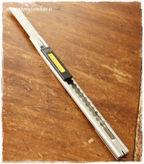 …helst á hann að vera um það bil svona, og ekki með “drasli” á endanum, sem sé hreinn skurður beint yfir en ekki of mikið á ská þannig að lengri endinn sé lafþunnur…