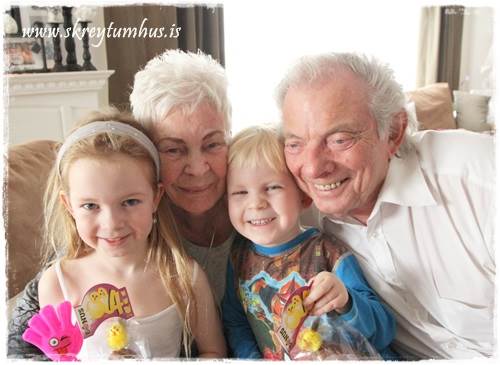 …biðin eftir eggjunum varð síðan mun þolanlegri þegar að amman og afinn komu í heimsókn, færandi hendi…