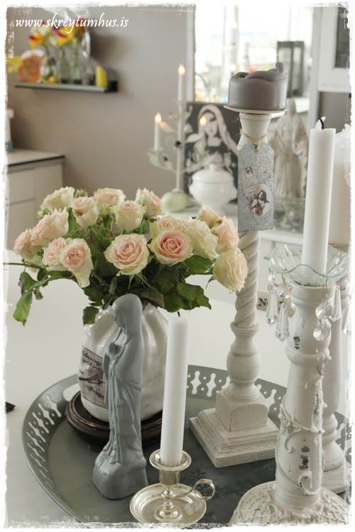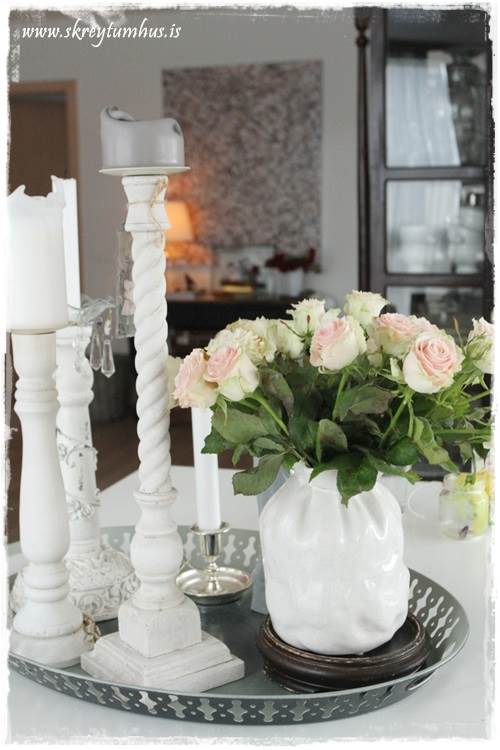 …ég er svo heppin að vera með tvö svona fölbleik rósabúnt í vösum í eldhúsinu, annað búntið er nýtt og ferskt, en hinar eru búnar að standa í viku (í næstu viku deili ég nokkrum “tipsum” með ykkur)…