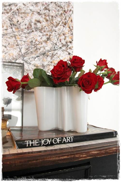 …en þar standa rauðar rósir í Alvar Aalto vasanum mínum…