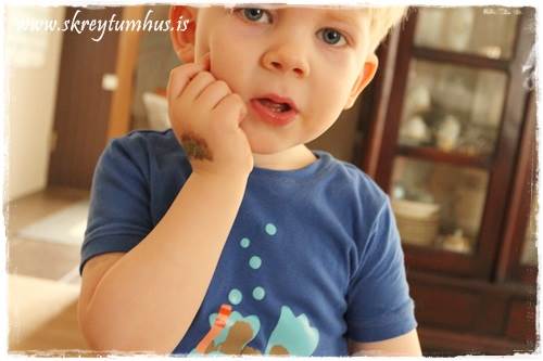 …enda voru vísbendingar sem hentuðu þeim báðum.  Ein var t.d. bara “hæ, hó – siglum með sjó” og sá litli var fljótur að svara: “sjóræningjaskipið mitt!!!”…