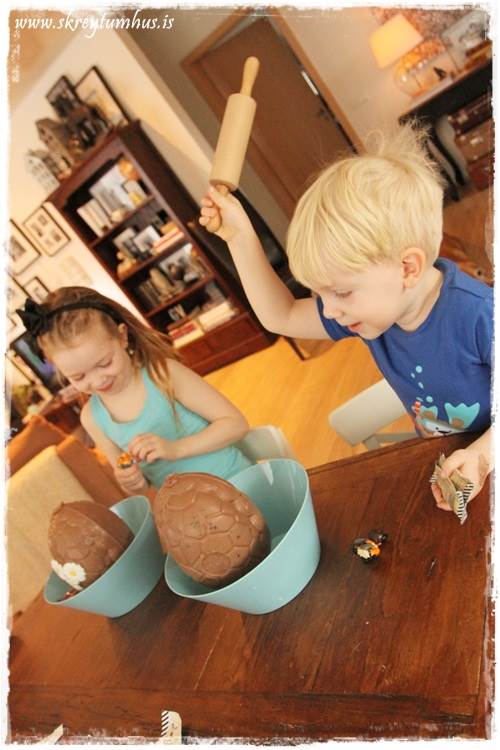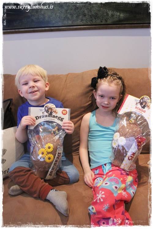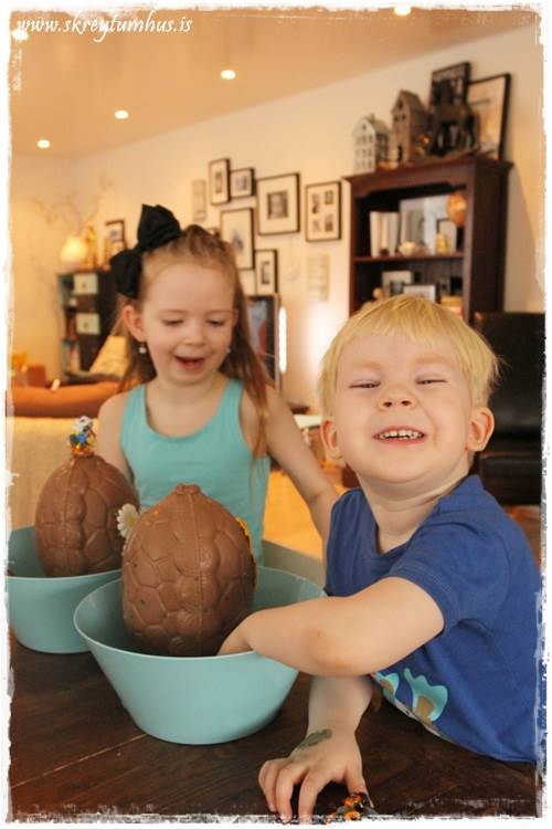 …venju samkvæmt þá hófst dagurinn á æsispennandi leit að páskaeggjum.  Fyndið hvað svona krakkakríli elska allar svona venjur og hefðir, þetta er það sem að þeim finnst skemmtilegast við páskana.  Leitin að eggjunum góðu…