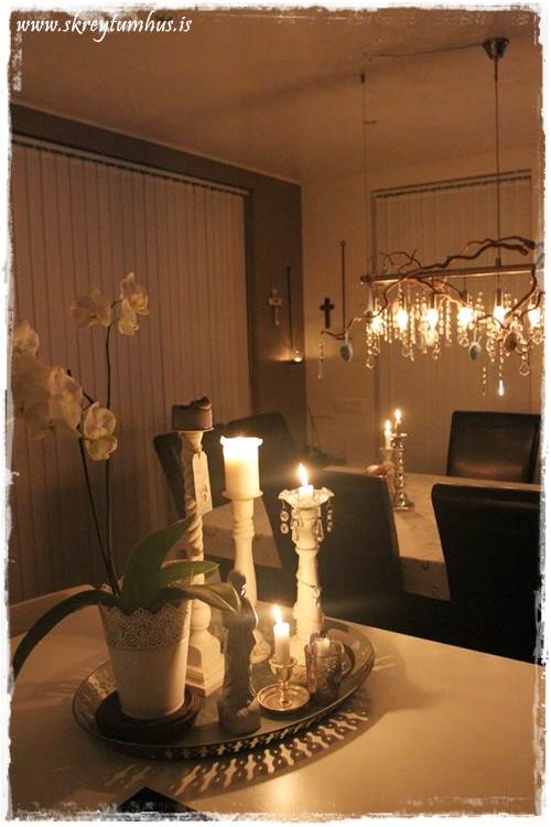 …þarna sést síðan glitta í það sem skreytti borðið, en þar var bara hitt og þetta sem ég týndi til…