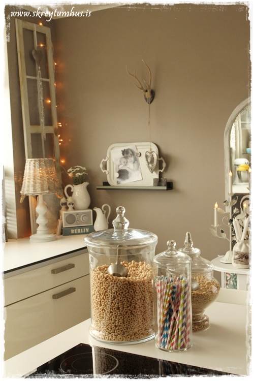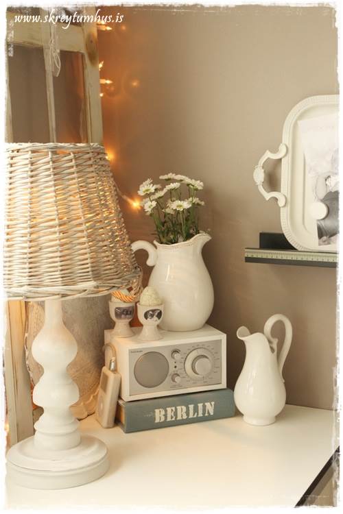 Váh hvað þú ert með þetta í puttunum stelpa! Hvíta hornið gaf mér innblástur að því hvernig ég get huggað til í einni hillu hjá mér. Takk fyrir það 🙂