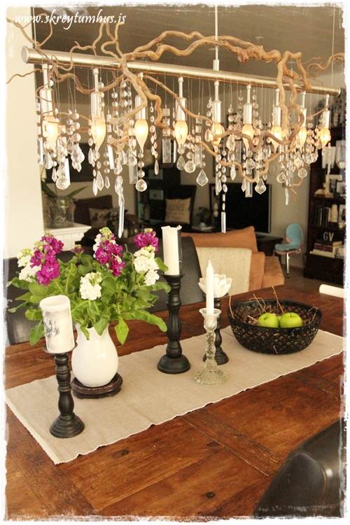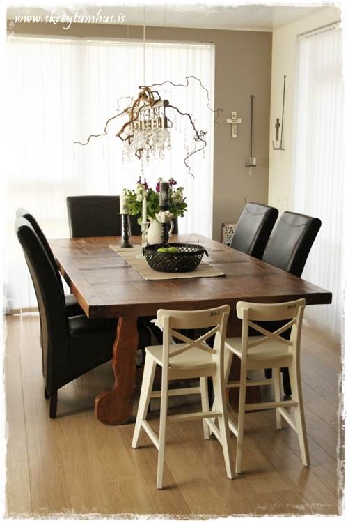 …svo er ég líka búin að vera svo lengi með hvítt og ljós á borðinu, að tilbreytingin var skemmtileg…