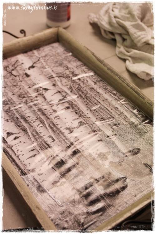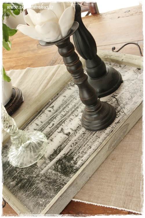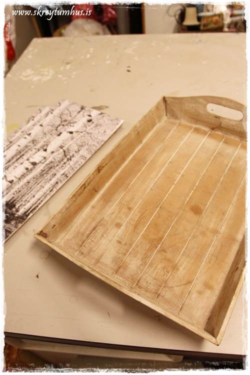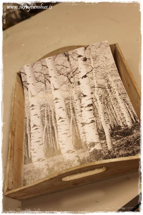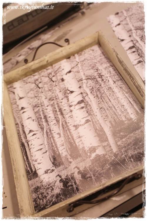 Mikið er þetta fallegur bakki!! ég var að klára að gera upp litla kommóðu þar sem ég límdi pappírsarkir ofan í skúffurnar og það kom líka svona ljómandi vel út 🙂