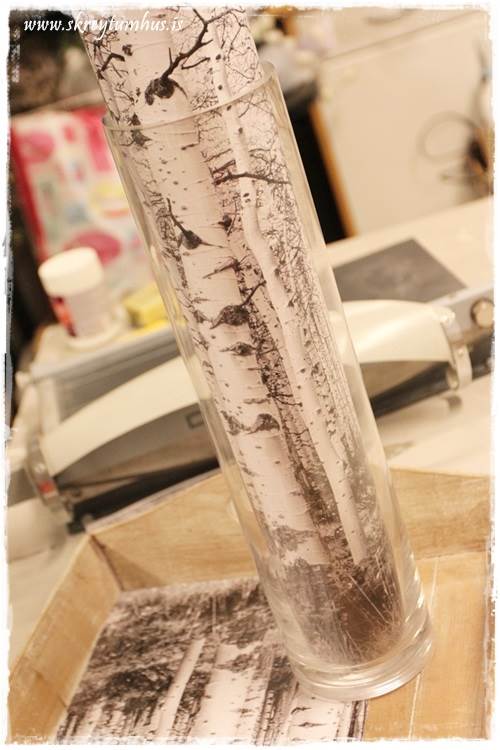 …ég fékk reyndar líka þá hugmynd að það væri flott að “klæða” glervasa með svona pappír, en það verður seinni tíma verk…