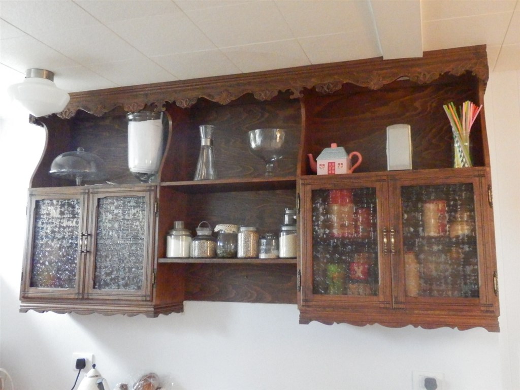 Hérna er efri partur af gamalli eldhúsinnréttingu. Með réttri málningu þá gæti þessi nú orðið sérlega æði fyrir ofan módern innréttingu, eða jafnvel fyrir ofan skenk. Svo ég tala nú ekki um í sumarbústaðinn, ommnommnomm…
