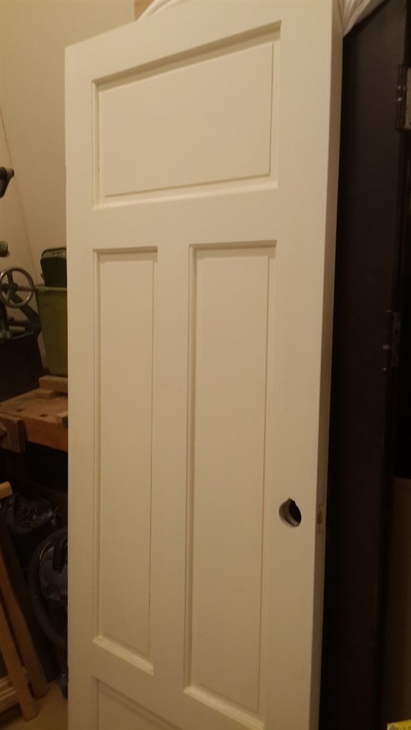…gömul hurð! Þessi er svo skemmtileg af því að hún er með eins mynstri að ofan og neðan, það er jafnt. Það þýðir að þetta væri flottur gafl á rúm, eða t.d. borð – með því að setja hjól undir…