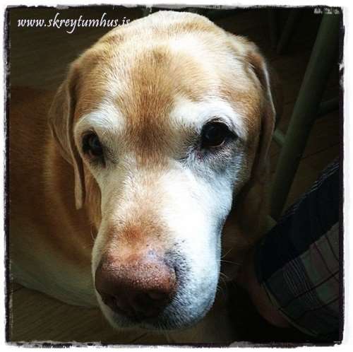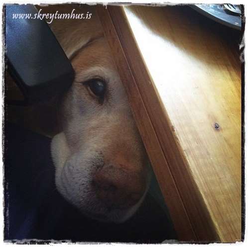 …eða gamall hundur sem reynir að troðast til manns, til að sníkja smá…