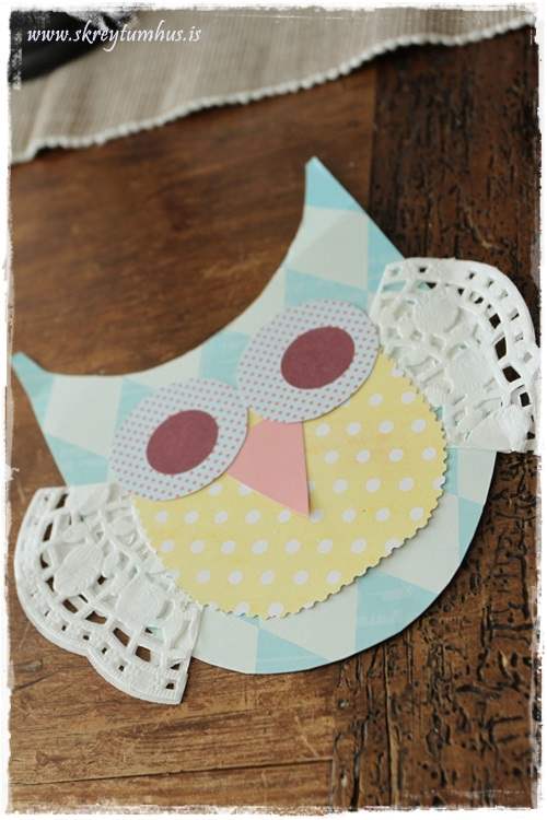 …síðan fyrst ég var að vinna með afganga, þá klippti ég þessa uglu til (eins og ég gerði boðskort út hérna um árið, sjá hér). En þetta er sniðugt í föndur með krökkunum, boðskort eða bara sem skraut í ramma, eða hangandi í glugga…