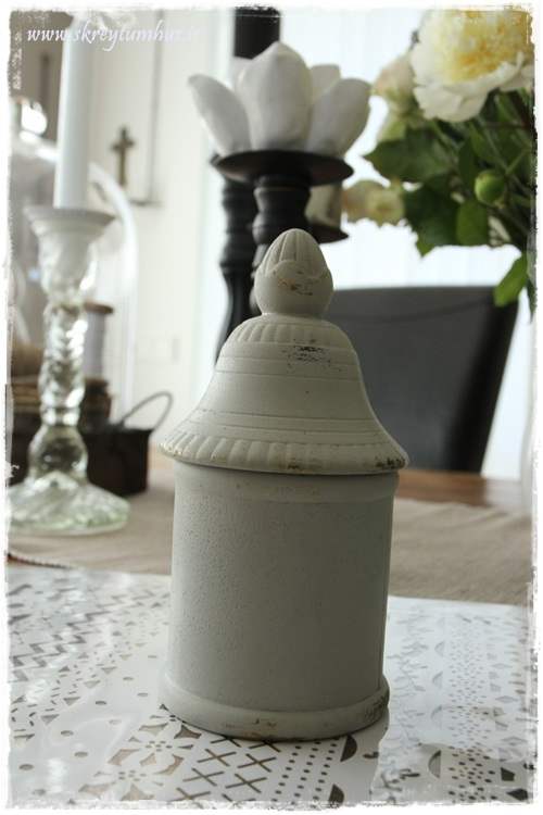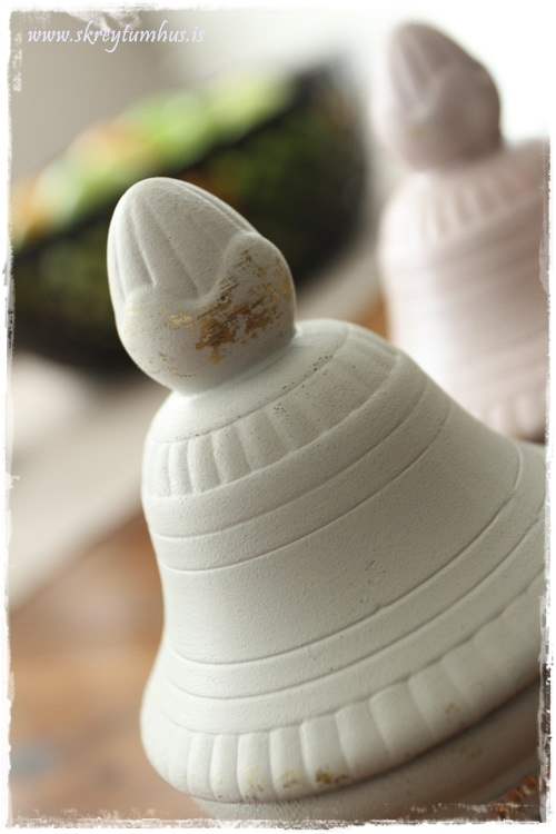 …því var tekið til óspilltra málanna að mála. Notaðist við föndurmálninguna frá henni vinkonu minni Martha Stewart – við erum ótrúlega nánar, og ég kalla hana bara Mörtu frænku (svipað og hún frænka mín Betty (Crocker))…