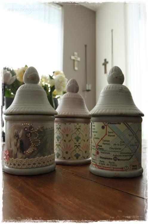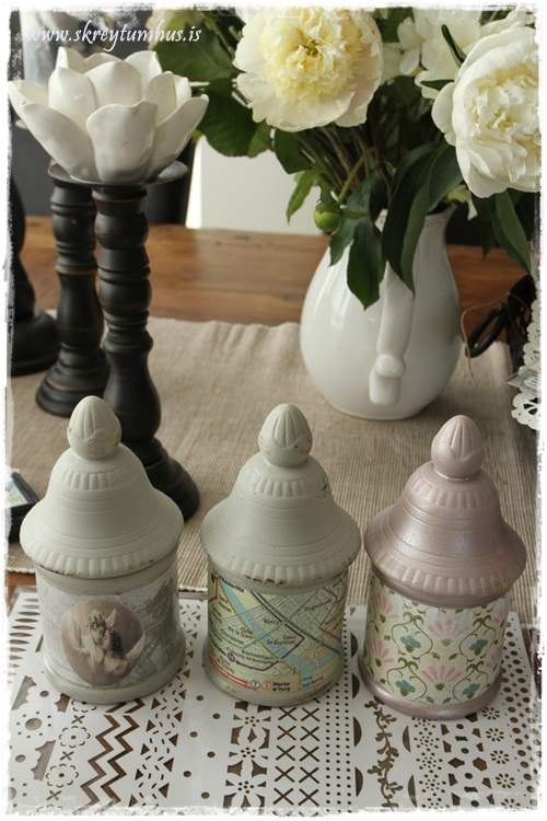…þrjár litla krukkur úr Góða. Svo sem sætar, en engu að síður keyptar til þess að breyta þeim smá.