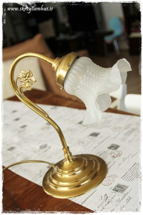 …finnst línurnar í lampanum fallegar og gaman að sjá smá í gyllt eftir að fara með sandpappír yfir…