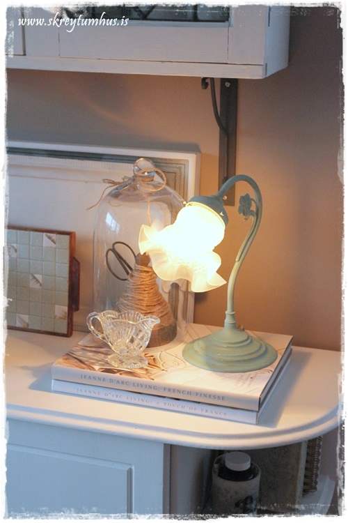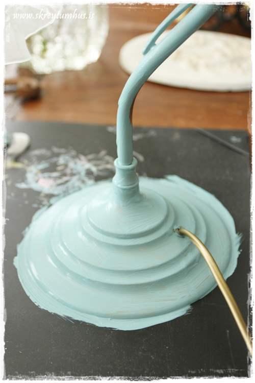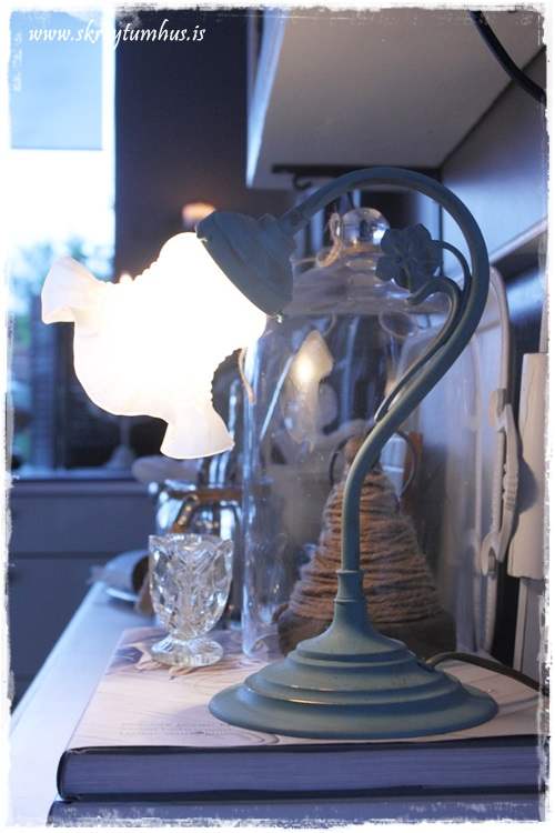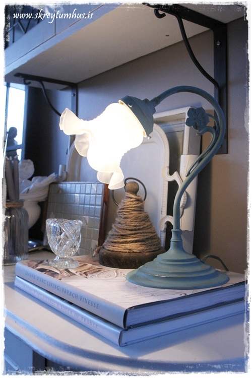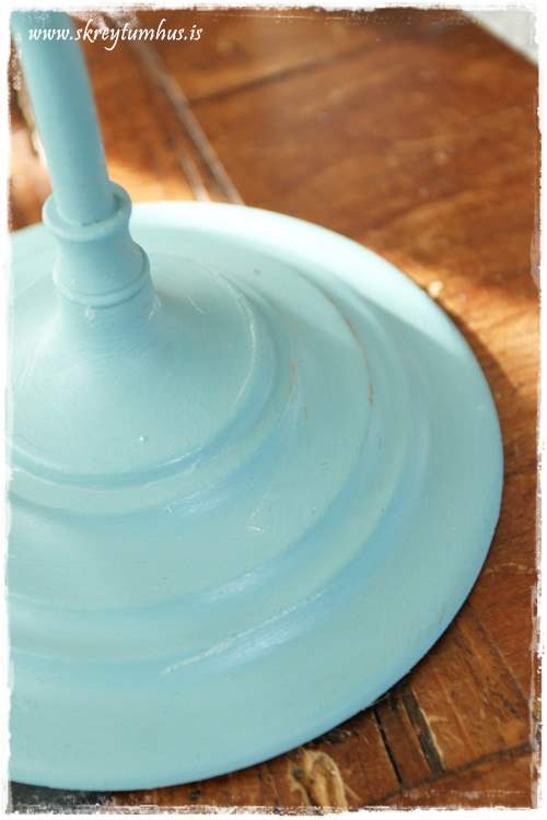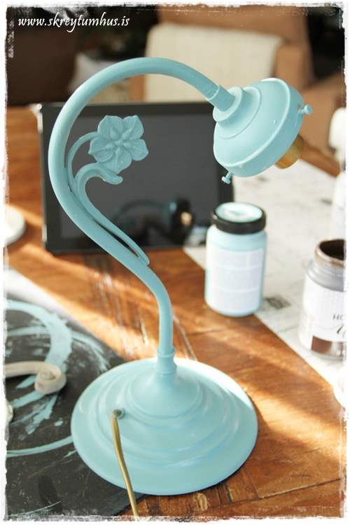 …en eftir málun, og að fara yfir smá með dekkra vaxinu, og líka smá með ljósa, eftir því hvernig áferð ég vildi.  Svo smá með sandpappírssvampinum, þá átti ég þennan lampa…