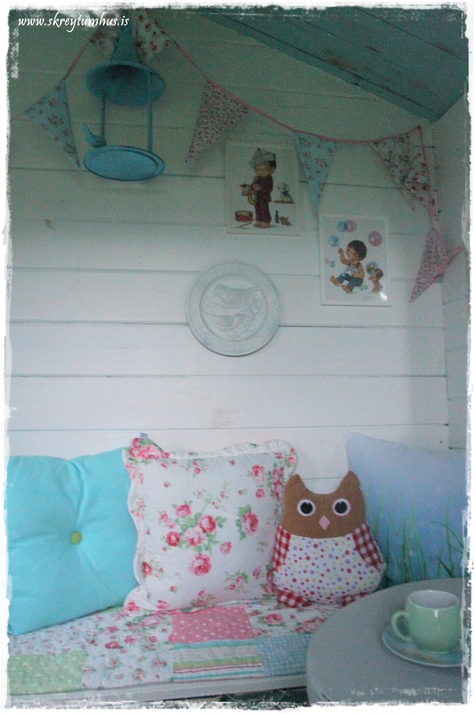 Fyrir röð tilviljanna þá gerðist það að ég málaði bæði þakið og loftið, og það gjörbreytti kofanum öllum – elsku besti kofi…