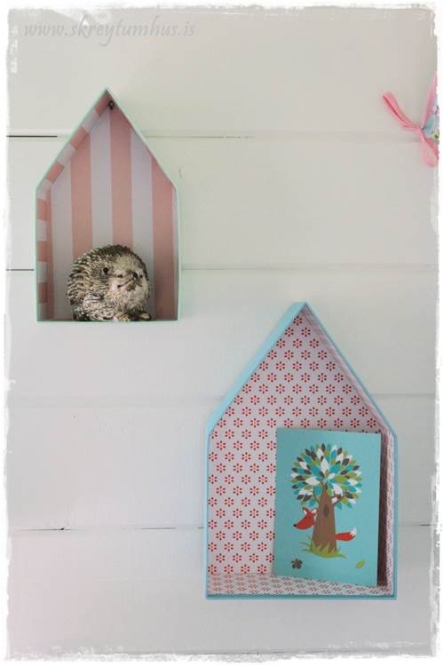 …eins og sést þá bráðnauðsynlegt að setja svona litlar krúttaðar hillur á veggi í dúkkukofum…