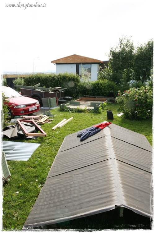 Því þegar að við kaupum húsið 2007, þá fylgdi hann með – stendur þarna við bílastæðið greyjið, grænn, ekkert gler í glugga og hurðalaus…