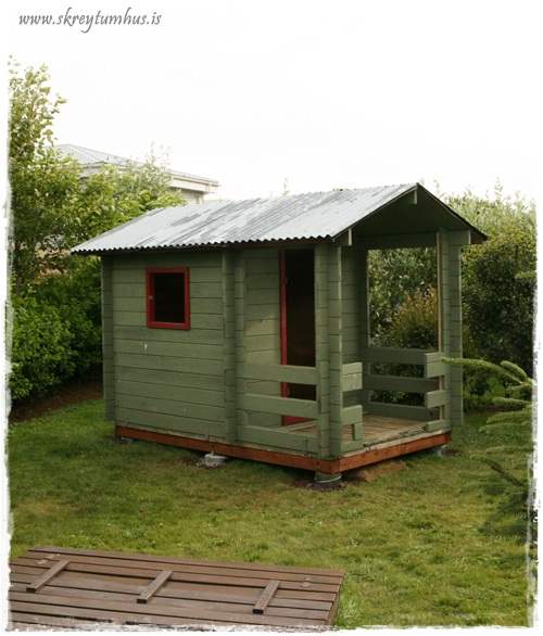 Ég er með nákvæmlega eins kofa í garðinum hjá mér og hef verið að mana mig upp í að mála hann að utan. Hvaða málningu notaðir þú?