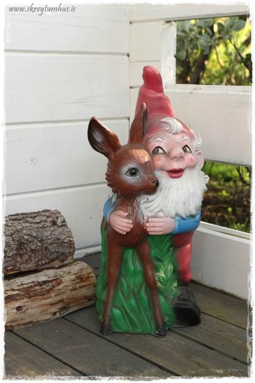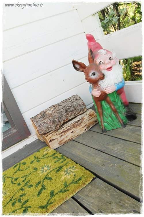 …ég er alls ekki garðálfatýpan, en ég er svo sannarlega bambatýpan! Þannig að þessi gamli, sem kom frá frænku minni, fékk að vera þarna með. Síðan setti ég bara smá trjálurka með, og auðvitað nýja mottu…