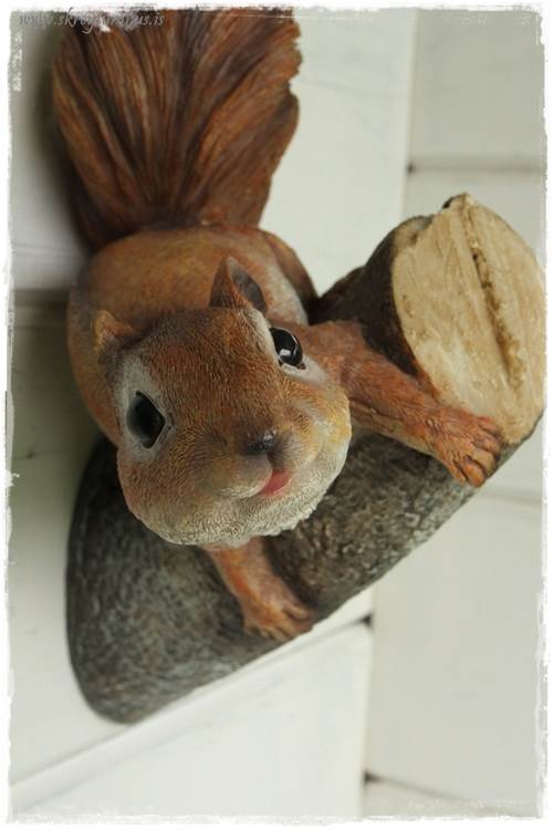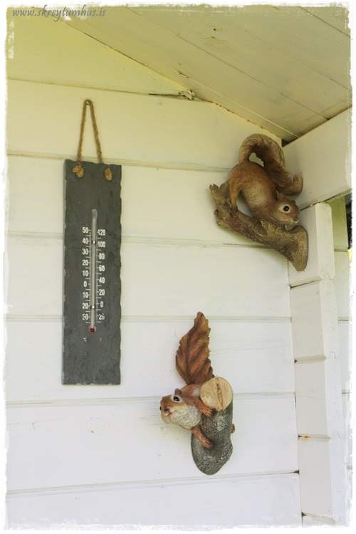 …á vegginn fór þessi hitamælir sem við höfum átt heillengi, hefur staðið heimilislaust í bílskúrnum, og svo þessir tveir íkornar sem voru bara of sætir – þeir urðu að fá að vera með…