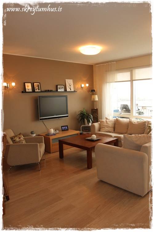En þið græðið á þessu brölti, og fáið að sjá heila íbúð, fyrir og eftir.  Það var ekkert stórvægilegt gert.  Mublur færðar til, hlutir grúbbaðir saman, en ekkert málað eða breytt á veggjum.  Þetta var svona míní-meikóver, þetta var smá púður og gloss 😉