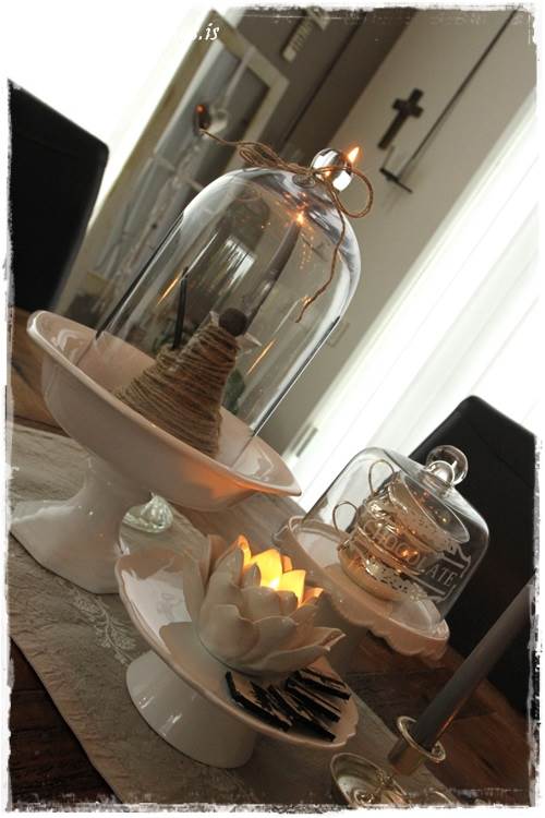 Mig langar að spyrja hvort þú vitir hvar er best að fá glerkúpla/lok ? Ég á hvíta diskinn á fæti úr Litlu Garðbúðinni (sem ég uppgötvaði eftir að lesa bloggið þitt) sem er á myndunum hjá þér, langar einmitt svo í glerkúpul á hann, hvar fékkstu þinn?