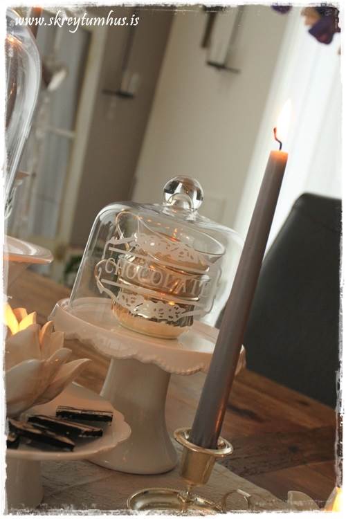 Glerkúplarnir eru að skjóta upp kollinum hér og þar, þessi Chocolate diskur, sem ég er að nota lokið af – ég held að svoleiðis gæti fengist í Hagkaup. Svo er eitthvað í Púkó og Smart, hugsanlega Borð fyrir tvo?? Skal fylgjast með og láta vita ef ég sé eitthvað 🙂