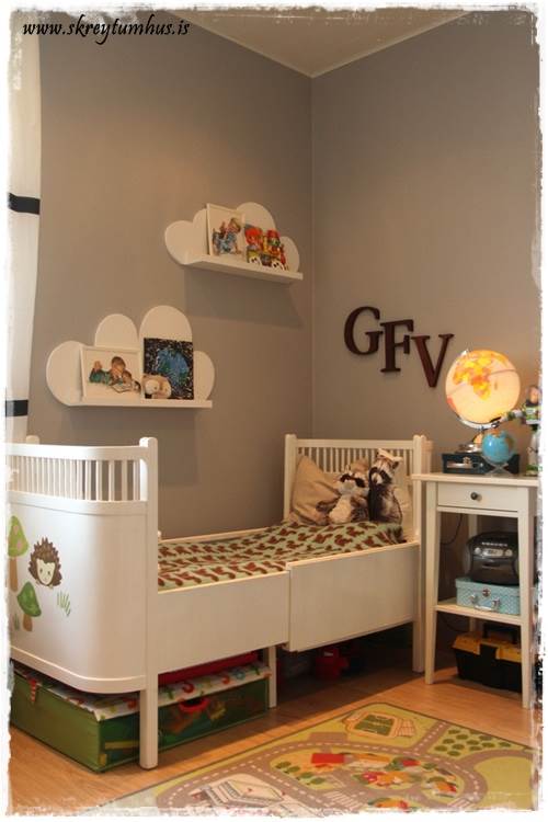 ….og svipurinn á þessum þegar hann sá herbergið sitt tilbúið 🙂