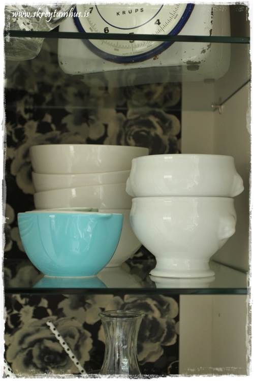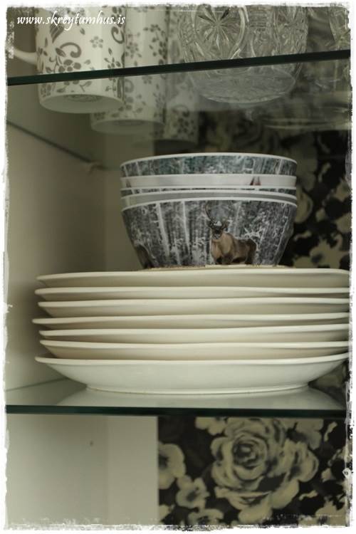 …í skápinn fór svo gamla matarstellið okkar, því að ég fékk svo fínt stell í jólagjöf. En þetta gamla og hvíta, það er gasalega fínt að eiga bara og svona til að stilla upp hvítu leirtaui, eins og ég er svo “svag” fyrir…