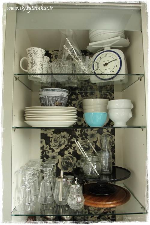 …en innan í þennan skáp setti ég svona sjálflímandi renning sem ég sjoppaði í henni Ammeríku seinasta sumar, ójá – ég er enn að vinna úr góssinu síðan þá. Svona á að sjoppa.