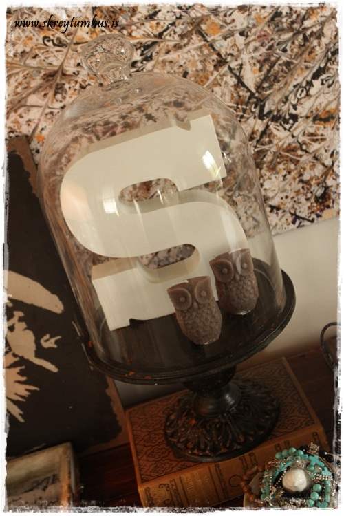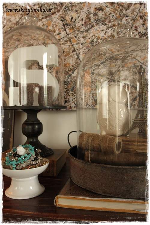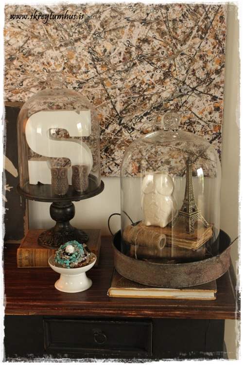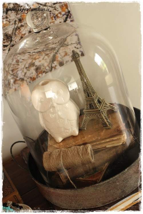…og setti þetta undir glerkúpulinn sem ég fékk í Litlu Garðbúðinni, og diskurinn á fætinum er frá sama stað…