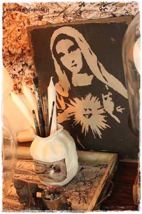 …kerti og gamlir penslar saman í krukku og alls staðar skarthrúgur eftir krummann mig…