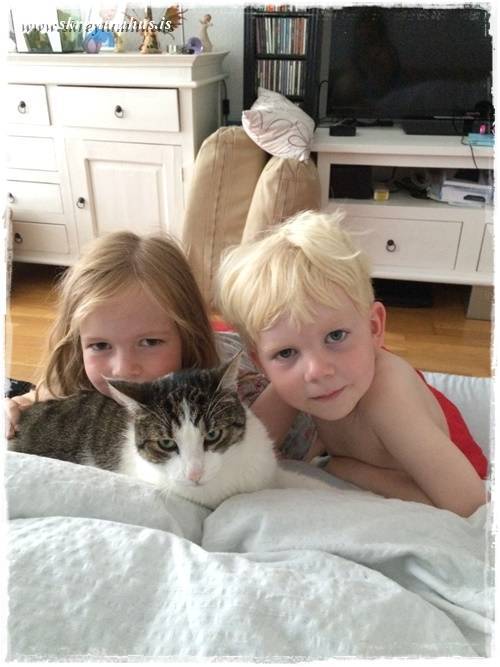 …og eitt sem að krakkarnir nutu mest öðru fremur, var að fá að hugsa um kisurnar, sem vinkona mín á, og láta eins og þau ættu þær…