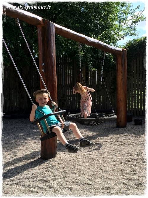 …það er líka svo að í Danaveldi er allt fullt af flottum leikvöllum, með alls konar spennandi rólum og græjum…