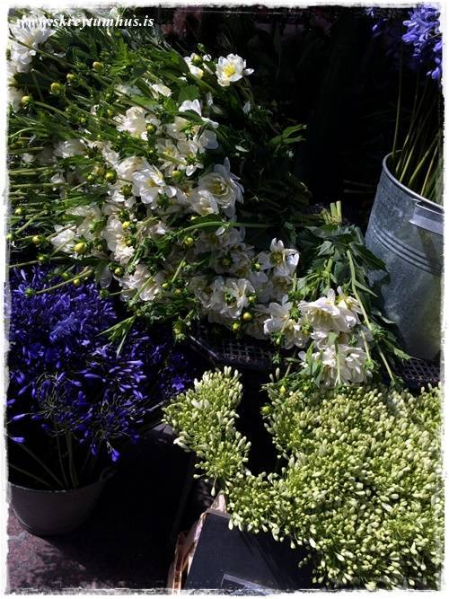 Jeminn hvað er gaman að sjá þetta – við yrðum semsagt góðar saman þarna og það þyrfti eflaust að tjóðra okkur niður…jafnvel setja okkur fyrir svona hjólavagn og láta okkur hlaupa brjálsemina úr oss;-D En svona var þetta þegar ég bjó þarna á “Kaupmannsstræti”…blómahafið hjá blómasalanum í ILLUM ööööskarði á mig alla morgna (ásamt vanillumúffunum hjá IllumBager) og ég þurfti að beita mig hörðu í hvert skipti sem ég gekk fram hjá…sem var stundum oft á dag…stundum langaði mig bara að sleppa tökunum og henda mér í blómahafið en náði að sýna stillingu og verslaði mér einungis ca. 3-5 vendi á viku…enda álíka dýrt og nammi þannig að það má;-D