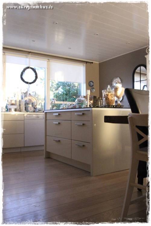 …en ég er að fíla að sjá svona svart fyrir ofan gluggann, sem kallast á við svarta kantinn á eldhúsinnréttingunni…