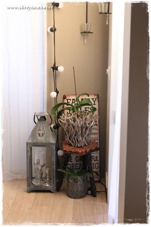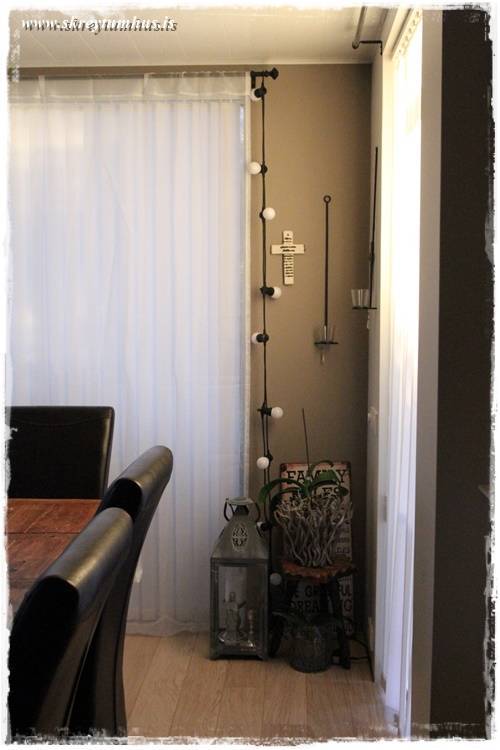 …við endann hangir síðan sería sem að ég fékk upp í Bauhaus, kostaði tæpar 5þús kr, og er í raun svona “útisería”. Mér finnst reyndar aðeins gulleit birtan af henni, þegar er kveikt á henni, en ég er enn að finna henni réttan stað. Í versta falli þá fer hún út á “pallinn” þegar og ef, hann fæðist einhvern tímann…
