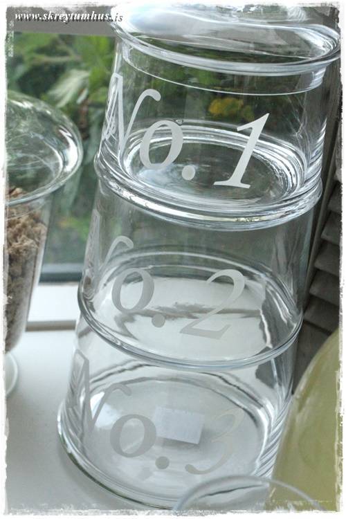 tíhí, ég rölti um rúmfó síðustu helgi, sá þessa krukku með 1,2,3 númerum og hugsaði ,,þetta er nú soldið ,,skreytum hús´´ legt 😉