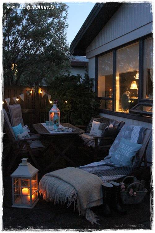 Ótrúlega kósý og fallegt hjá þér. Æðisleg ljósaserían -falleg í kvöldbirtunni. Fór og keypti mér hvítu fuglaluktina í dag. Sá hana fyrst hjá þér og hef ekki hætt að hugsa um hana:) Alltaf gaman að skoða síðuna þína.