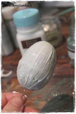 Þar fékk ég meira af yndislegu Martha Stewart málningunni og ég beitti henni óspart á frauðeggin mín…