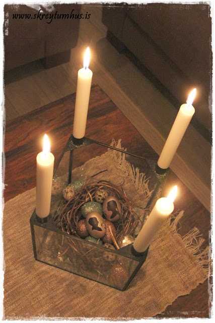 Til þess að gera stutta sögu langa. Ég er sem sé búin að skreyta í eldhúsinu og yfir borðstofuborðinu, og það voru allt svona “barnvænar krúttuskreytingar” 🙂 Mig langaði í eitthvað aðeins öðruvísi í stofuna og því lagði ég leið mína í krúttulega skreytiskúrinn hennar Svölu, Skrapp og Gaman.
