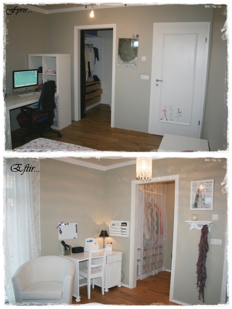 …ég fékk bréf frá lesanda og hún óskaði eftir smá hjálp með breytingar á herbergi fyrir fermingardömu.  Síðan sendi hún mér myndir af útkomunni og var svo elskuleg að leyfa mér að deila þessu með ykkur, enda sérlega vel heppnað!