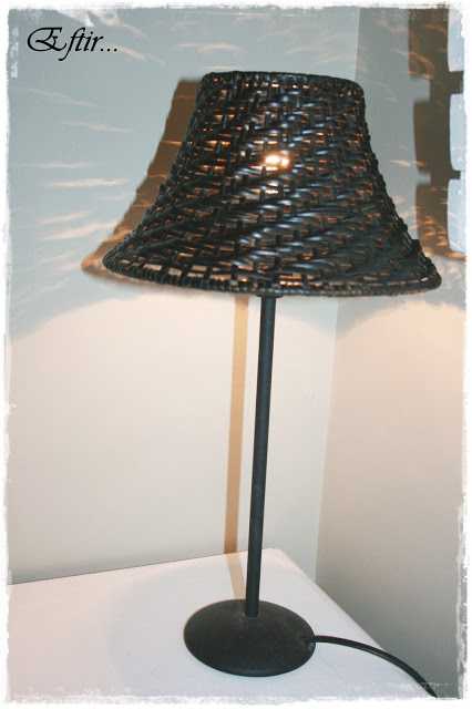 Þessi skermur var brúnn og er úr basti – það passaði náttla engan veginn svo ég spreyjaði hann svartan, elska birtuna sem kemur frá honum.