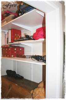 Síðan gæti verið kjörið að setja hillur á vegginn og alveg niður að gólfi fyrir kröfur, skó og alls konar dóterí.