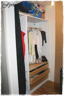 Fataherbergið: það gæti verið sætt að setja einhverja blúndu gardínu, eða ljósa gardínu, fyrir hurðina.  Síðan gæti þess vegna verið sætt að setja einhverja ljósaseríu innan í skápinn og þá skín birtan dauf í gegn.  Það er frábært að kaupa körfur í hillurnar og raða skemmtilega í þær.  Þannig að skápurinn njóti sín betur, og á móti hurðinni er hægt að setja stórann spegil á gólfið og láta hann halla upp að veggnum.