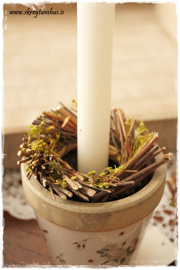 En þessi hreiður eru dásamleg og þetta er frábær hugmynd með blómapottana og kertin!