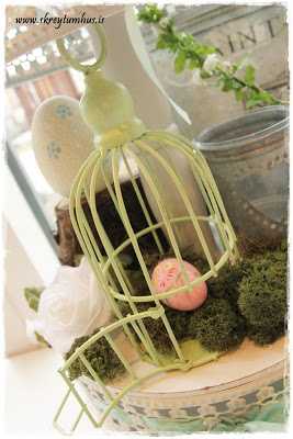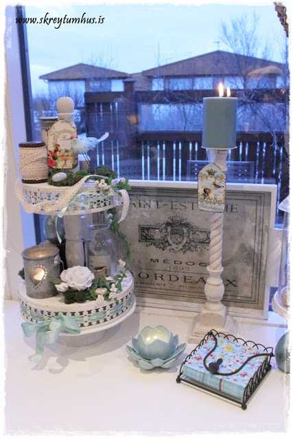 …ég setti litla búrið á neðri hæðina, og færði hvítu silkirósina framar…