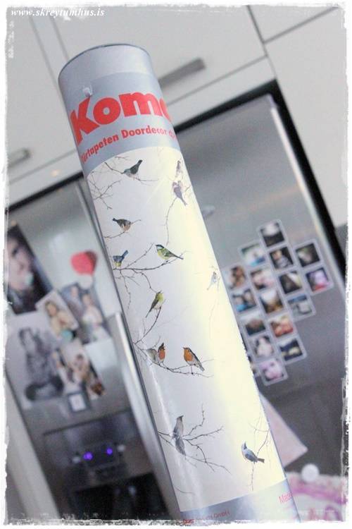 Vá! Þetta er ofboðslega flott! Lífgar þvílíkt upp á skápinn og þessir fuglar eru bara einum of fallegir! Í mínum huga þá er þetta rétti staðurinn fyrir þetta veggfóður, að herbergishurð dóttur þinnar ólastaðri 😉