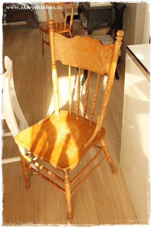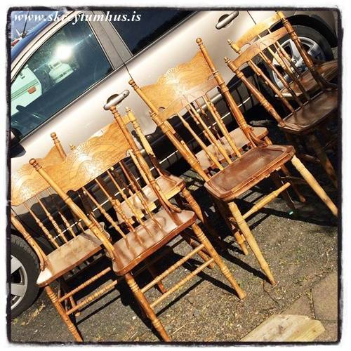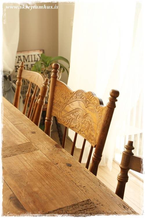 …ég var spurð hvar ég hafi fengið stólana og svarið var á Facebook.  Ég birti meira að segja þessa mynd inni á Skreytum Hús-hópnum, og í nokkra daga hékk hún þarna inni, daman sem var að selja stólana fékk ekki fyrirspurnir á þá – en seldi að lokum bara borðið.